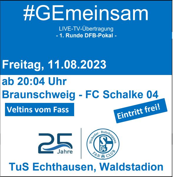 WICKEDE-ECHTHAUSEN. Der Schalke Fan-Club "Wickeder Ruhrknappen" lädt alle Mitglieder und Fußballfreunde für Freitag, 11.08.2023 ab 20:04 Uhr in ...